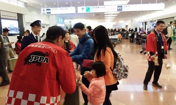 中国等からの旅客便、国際クルーズ船等が到着する空港・海港を中心に、年末年始、GW期間、夏季期間のほか、中国の春節や国慶節の時期にあわせて、全国的に広報キャンペーンを実施しています。広報キャンペーンでは、リーフレットの配付や旅客への声掛けにより、中国等におけるアフリカ豚熱の発生、アフリカ豚熱発生国からの豚肉等畜産物の持ち込みの禁止についての情報提供、海外における畜産関連施設への立ち入りに関する注意喚起を行っています。