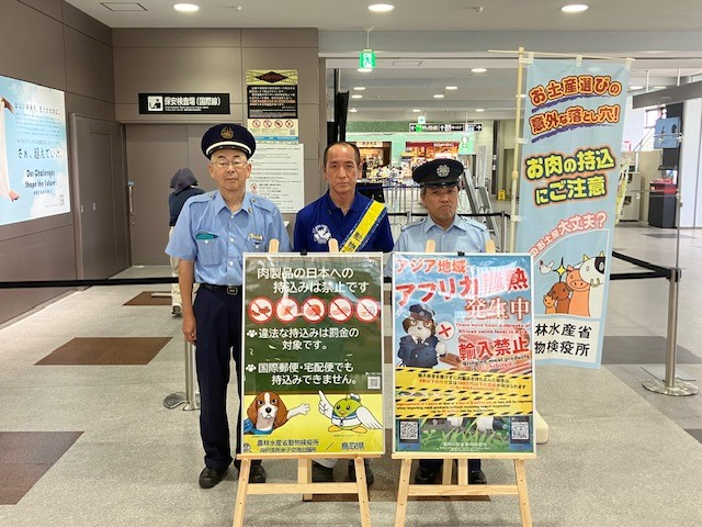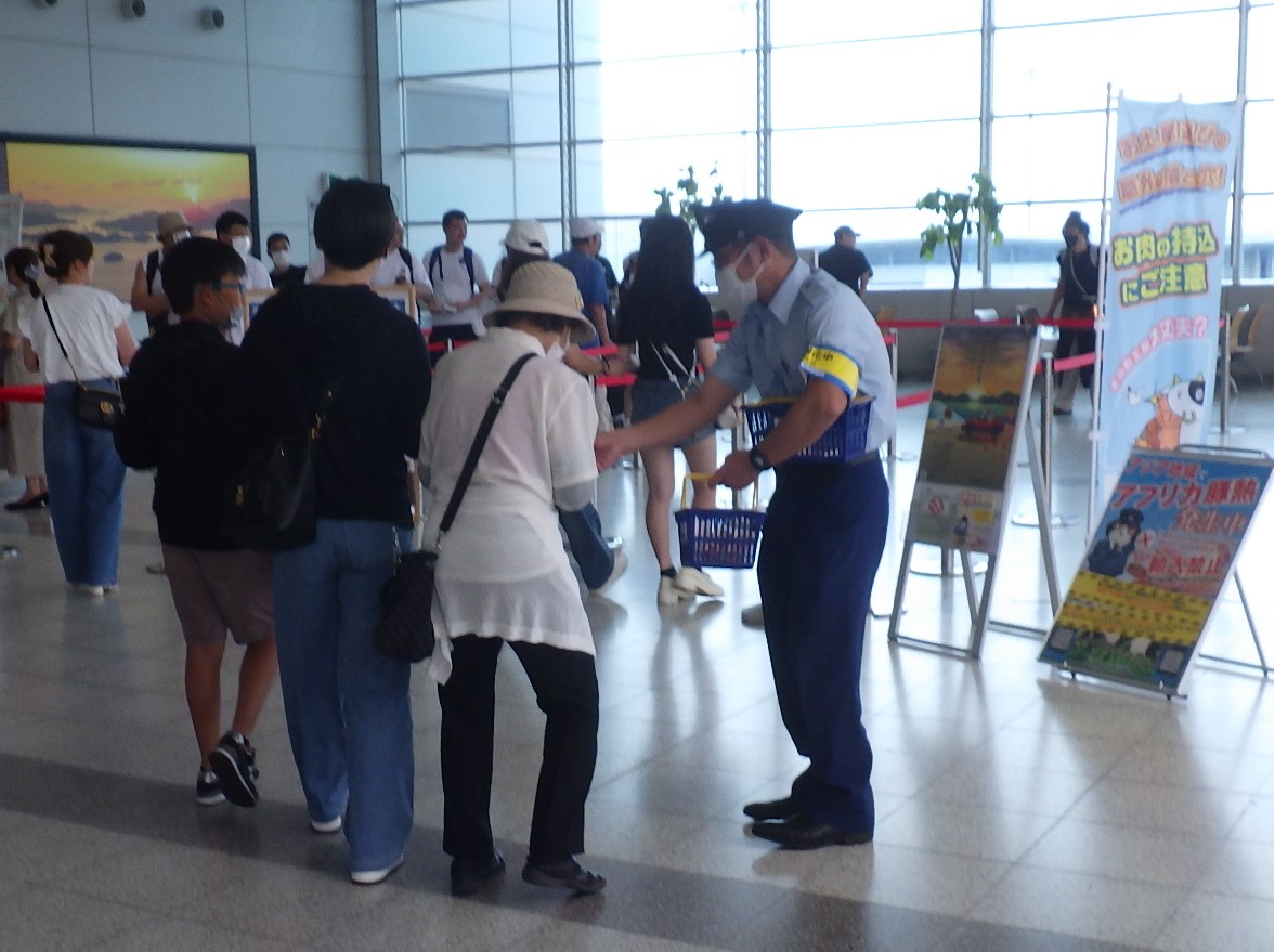 日本を出発する旅行者へ、帰国の際に日本へ肉製品を持ち込まないよう呼びかけました。