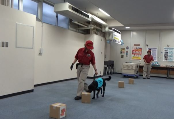 植物防疫所と共同で動植物検疫探知犬のデモンストレーションを行いました。(令和7年10月4日)