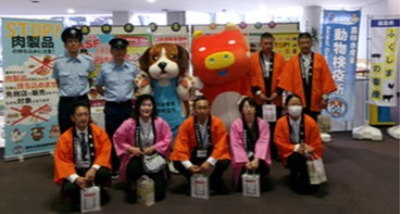 内容:動物検疫所、宮崎県、公益社団法人宮崎県畜産協会、みやざき養豚生産者協議会と合同で広報活動を行いました。
