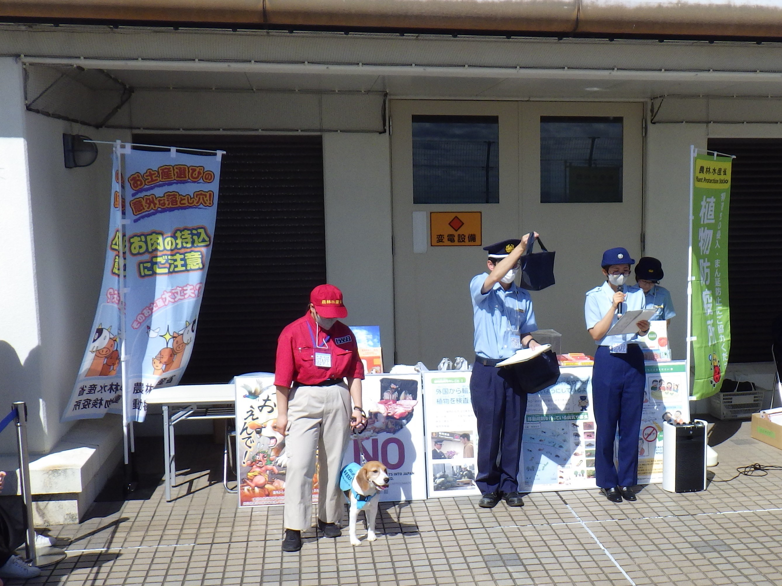 動植物検疫探知犬のデモンストレーション、動物検疫に関する注意喚起(業務の紹介、質疑応答、クイズや広報物の配布)