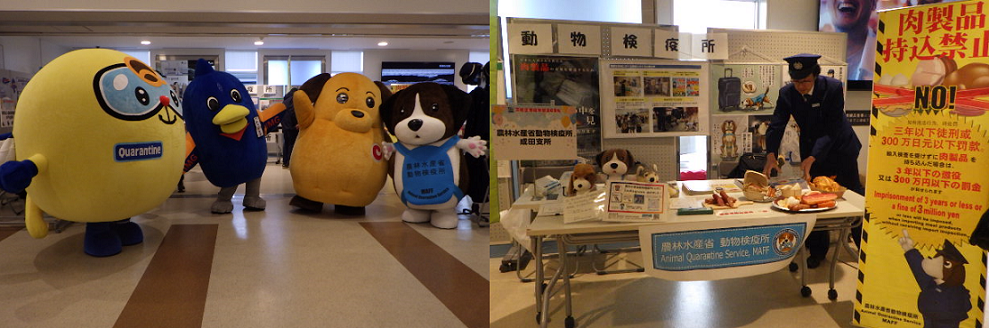 ※第1ターミナルでは、ぴーきゅん(植物防疫所公式キャラクター)、クンくん(動物検疫所公式キャラ