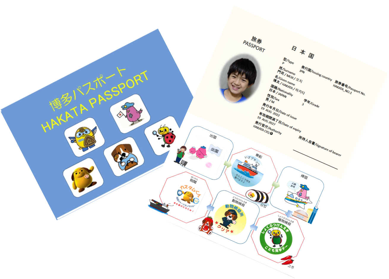 フェリーターミナル(休航中)において、門司税関、福岡出入国在留管理局、門司植物防疫所と共催で、出入国の模擬体験をするイベントを開催しました。子供たちには一人一人の顔写真と氏名入りの特別パスポートをプレゼントしました。子供たちはCIQブース通過ごとにシールを貼ってもらい楽しそうでした。動植物探知犬のデモンストレーションも行いました。