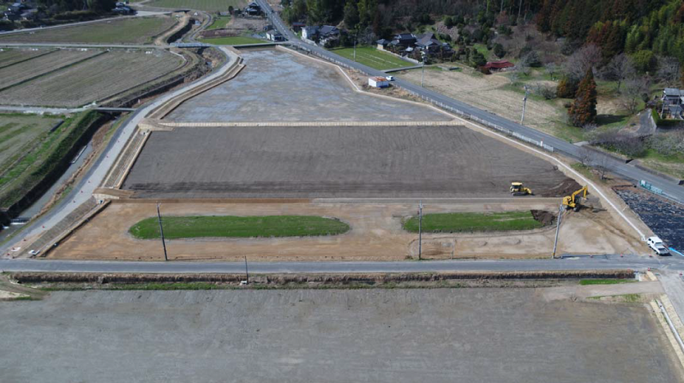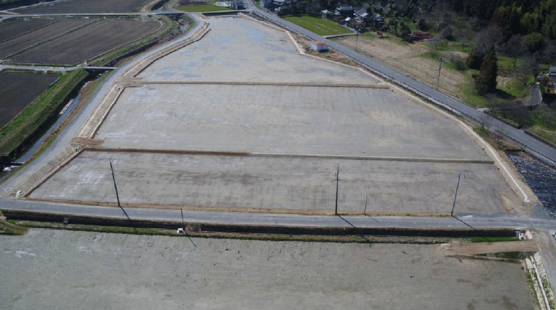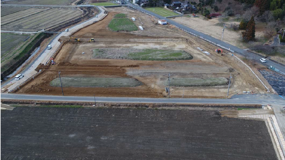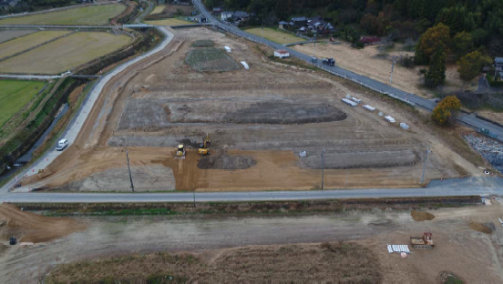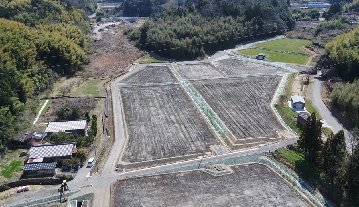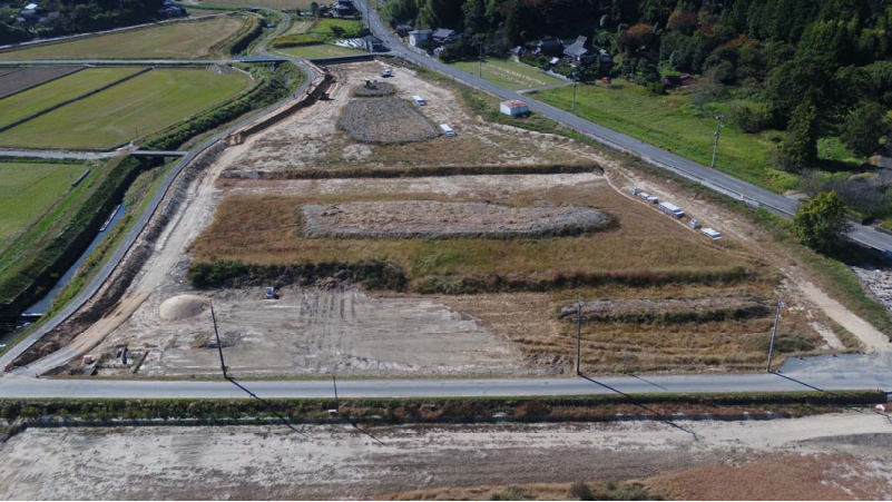 西田布施・友石団地では、令和2年より数年にわたり26ヘクタールの区画整理工事を実施しています。