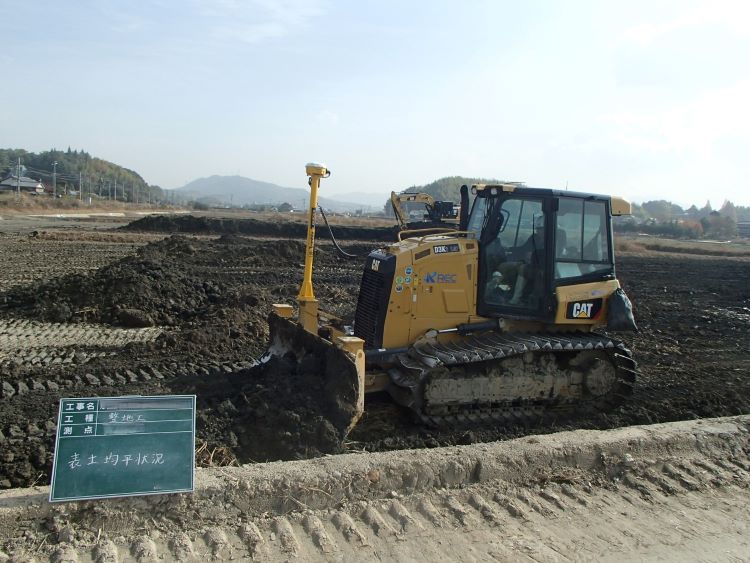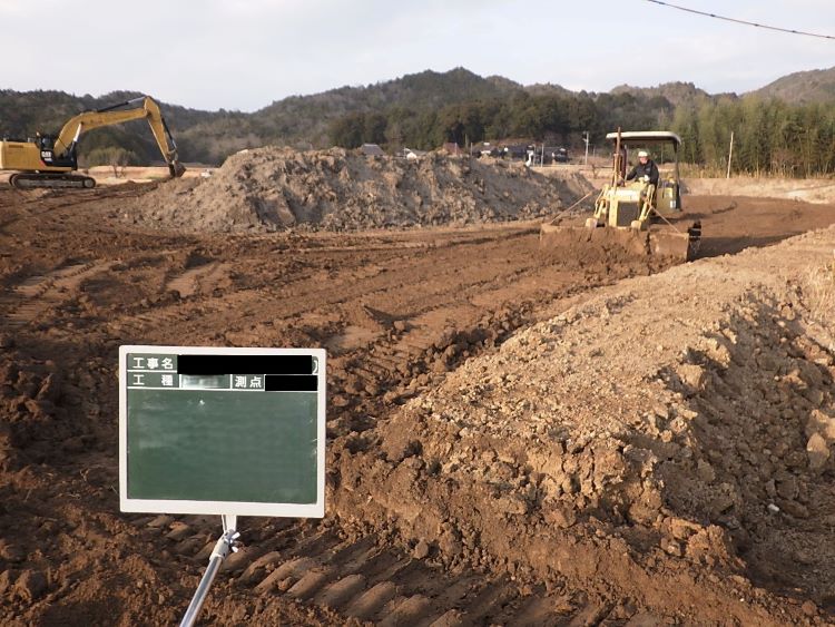 表土をはぎ取った後、基盤の計画高さ(表土分を下げた高さ)となるよう、基盤の造成(切盛)を行います。