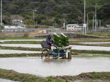 高知県西部の黒潮町で春を告げる早期米の田植えが始まりました。 |