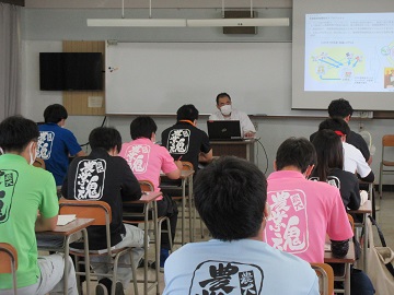中国四国農政局高知県拠点は、6月29日(火曜日)、高知県立農業大学校(いの町)において、園芸学科と畜産学科の2年生25名を対象に「中国四国地域農業をめぐる事情」と題して中国四国地域の農業構造や、農林水産物・食品の輸出力強化をはじめとした農林水産省の施策等について説明を行いました。 |