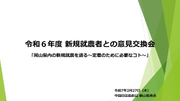 岡山県拠点では、農業者・消費者・行政関係者の皆様からの、農政に関するご相談、事業や制度へのご質問などを受け付けています。また、「農政を現場へ伝える」「現場の声をくみ上げる」「現場と共に解決する」ため、農業者の皆様の声を積極的にお伺いします。意見交換等を希望される農業者の方で、何か話をしてみたいと思われる方については、気軽に岡山県拠点までご連絡ください。