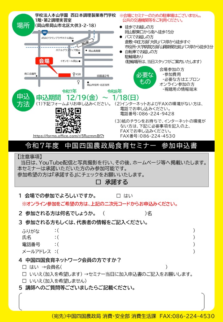 最新トピックス! 令和7年度中国四国農政局食育セミナーへぜひご参加ください!