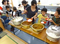 かまどでご飯炊き みんなで作ったカレーをいただきます みんなでそうめん流し