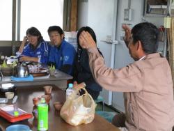 その後、米麹作りの作業手順を三田慧子氏に指導いただき、精米が蒸しあがるまでの間を利用して、三田善雄氏から、稲作の作業の流れや作業の意味、食料自給率や食品ロスの現状、フードマイレージなど、農業と食に関するお話を聞きました。