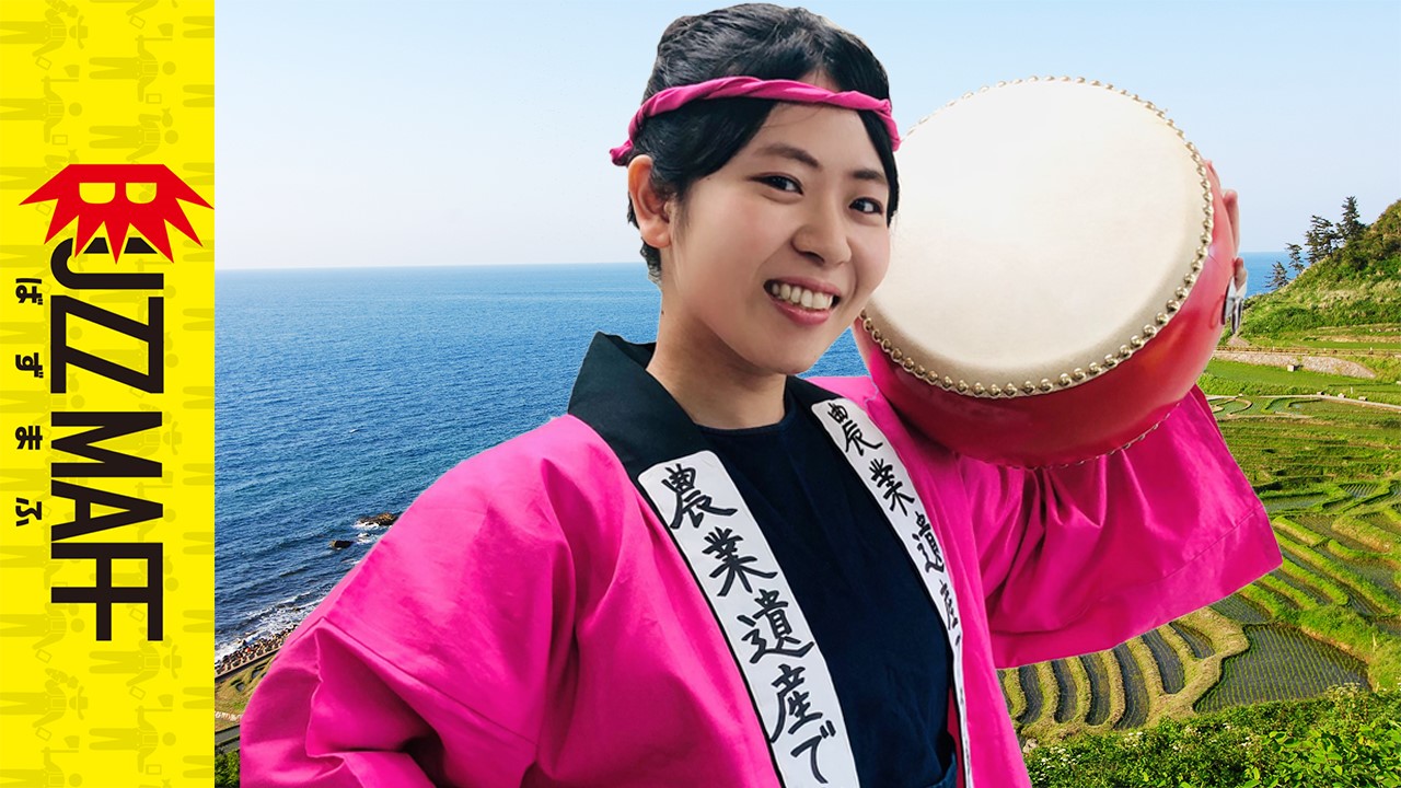 Lucky-Village Yoshimura disseminates information on the attractiveness of agriculture and agricultural villages by taking advantage of her skill of playing Japanese drums!