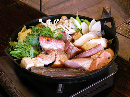 One of the local dishes remaining in this area is "heka," a sukiyaki-style dish with seafood served on a flat iron pot called "heka-nabe." It is said that “heka,” a word that was used to refer to the metal tip of a plow, an agricultural tool, was used in place of a pot, and that is how the dish came to be known. Seafoods of the season including tilefish, righteye flounder, and rosy seabass are used as ingredients in the “heka.” Fresh seafood cut in big chunks is another feature that makes it unique.