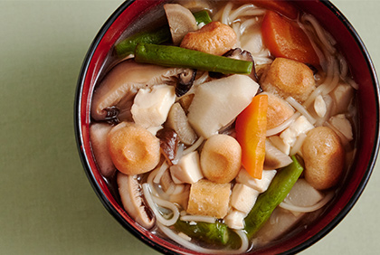 One of this region's local dishes, okuzukake, is Buddhist cuisine eaten during Obon. To make the dish, carrots, burdock root, and other vegetables are finely chopped, and mixed with a dish of hot noodles or umen, a specialty of Shiroishi City, before being topped with sauce of potato starch dissolved in water. It draws its name from the kudzu that was once used in place of potato starch for the sauce. The ingredients used vary from household to household, and the dish is still eaten at home to this day.