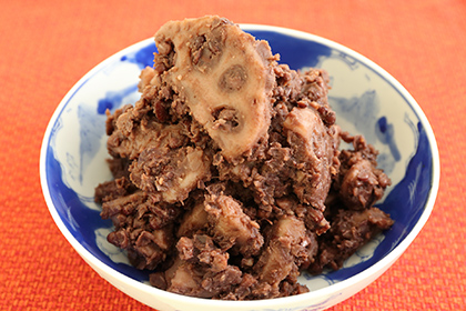 “Sumitsukare” is a local cuisine from the western region. It is a dish of beans, daikons, carrots, salted salmon heads, etc., simmered with sake lees.