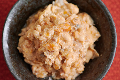 The origin of this dish is said to date back to the Heian period (794-1192). It is said to be a “sumutsukari” that is recorded in the “Kojidan,” a collection of stories about ancient events. It is said to have originated in the country of Omi and the capital of Kyoto, and was eventually introduced to northern Kanto. In the western region of Ibaraki Prefecture, it is a popular festive food eaten at the beginning of February. There is still a tradition of using leftover beans from Setsubun as an ingredient.