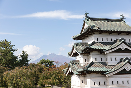 The Tsugaru region is a part of Aomori Prefecture that, during the Edo period, was the Hirosaki Domain, established by the feudal lord Tsugaru Tamenobu. The castle town was Hirosaki. Hirosaki Castle, which has distant views of Mt. Iwaki, is the only historic site in the Tohoku region with a castle tower remaining intact.