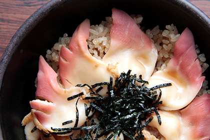 Hokkigai surf clams are often harvested in the coastal areas of Fukushima Prefecture. People have been fishing off the coasts of Soma and Futaba since the Meiji era (1868-1912), and the area has long been known as a famous hokkigai producer. The mineral-rich seawater off the coasts of Soma and Futaba enhances the growth of the hokkigai, making them relatively large, sweet, and soft in texture. Hokki meshi is a well-known local rice dish that uses hokkigai. The rice absorbs the broth from the hokkigai, giving it plenty of umami.