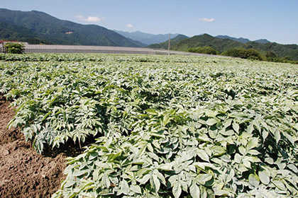 Konjac taro, the base ingredient of konjac (konnyaku), is believed to have been brought into Gunma during the Muromachi period. Cultivating konjac taro was a challenging task, as the crop is highly vulnerable to natural disasters and disease and requires several years before it can be harvested. Moreover, it is more suited to a milder climate with good drainage, which limits the area in which it can be grown. However, Gunma is blessed with mountain ranges such as Mt. Akagi and has abundant soil that is rich in volcanic ash. Coupled with its moderately dry climate and lush natural surroundings, the prefecture possesses the ideal conditions for growing konjac taro, which has gradually become more widely cultivated. Today, konjac taro is known as a local specialty of Showa Village, Shibukawa City, Numata City, and other semi-mountainous areas in Gunma Prefecture, which has made Gunma the prefecture with the highest yield of konjac taro in Japan, boasting over 90% of its total market share (based on “Matters Concerning Konjac Taro, June 2020” published by MAFF). Out of Gunma’s countless agricultural and livestock products, konjac taro has become an ingredient that is especially close to the hearts of local residents.