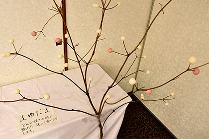 The konjac taro, shiitake mushrooms, and leeks (negi) cultivated as agriculture gained traction were used to make a dish called “koshine-jiru,” which is named by taking the first character of each of these ingredients. The local tradition of valuing cocoons, which are essential for sericulture, has also given rise to a culture of offering “cocoon balls” made by rolling up pieces of dough comprising rice flour, ground millet, and corn flour.