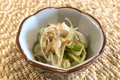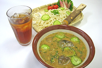 Wheat was also a staple ingredient in Western Saitama, a region known for its rice production. In fact, wheat has often been planted as an off-season crop in paddy fields and is highly valued by farmers as an everyday ingredient. While “hiyajiru/suttate” is sometimes poured over rice, it is typically used as a dipping sauce for udon noodles in this region. Summer, the period from the time rice is first planted to its eventual harvest, is a busy time for farmers who spend most of their time working in the fields. “Hiyajiru/suttate” is a dish valued for how easy it is to eat even when one’s appetite is suppressed by the heat and its hassle-free preparation.