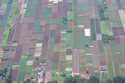 While Central Saitama was home to many commercial lodging towns known as post towns, its proximity to the metropolitan area and its large consumer market has led to the development of agriculture. Saitama City remains one of the prefecture’s leading production areas for vegetables. Wetland rice cultivation is practiced in the basins of the Ayase River and the Motoara River in the eastern part of the city, while Japanese mustard spinach and Shantung vegetables are grown in the surrounding areas. The middle section of the Ara River in the city’s western part is a production area for early rice, while fruit trees such as pears and grapes are grown in the northwest, and shrubs, saplings, and vegetables in the central zone.