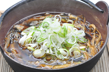 Since wheat has been cultivated since ancient times, udon is also enjoyed in many regions, with one of the most famous examples being “niboto/himokawa.” Unlike “hoto” in Yamanashi, which is made with pumpkin and topped with miso, “niboto/himokawa” is made by incorporating the use of seasonal vegetables. This is a dish that keeps one warm during the cold winter months as families gather around the dinner table. This dish is still often made at home today, and the version in Fukaya usually includes a generous amount of Fukaya leeks.