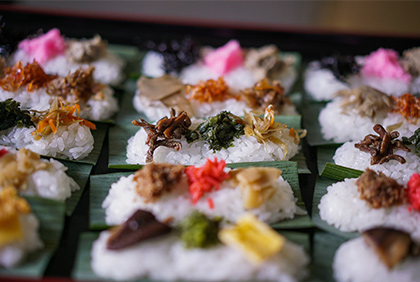 Its steeply sloping seabed makes for the perfect fishing ground. The city has seven fishing ports, landing red snow crabs, gengyo (a deep-sea fish), and deep-water shrimp. One of the local dishes remaining in the area is Sasa Zushi, or bamboo leaves sushi. Sasa Zushi is served on a bamboo leaf and colorfully decorated with seasonal ingredients, so it is mainly eaten at festivals and celebrations.
