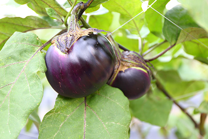 Sixteen vegetables have been certified to meet these standards (as of October 2020). The Nagaoka kinchaku nasu is a round, plump eggplant that began to be cultivated around the middle of the Meiji period (1868-1912). As July approaches, when the season is in full spring, it bears fruit bursting to life despite the summer heat. Although it is also delicious grilled or fried, the Nagaoka-style is to enjoy it steamed.