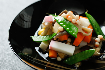 "Edible chrysanthemums are full of taste and make vegetables more gorgeous," says Hiroki Muramatsu from the Niigata Central Chefs Association. He is training the next generation of chefs while serving as the executive chef of Ichishime, a ryotei restaurant in Niigata City. Although Ichishime boasts kaiseki cuisine that uses an abundance of seafood and seasonal vegetables, some of its regulars prefer their noppe.