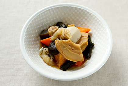 Depending on the region, it may also be called noppei-jiru, konimo, kokusho, daikai, and so on. Ichishime has arranged this well-established home-style dish into something only a ryotei restaurant can make, serving it in a small mallet-shaped bowl with salmon and kinugaya (a type of pea) for color.