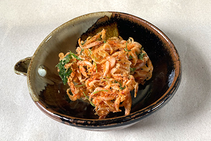 Dishes made with the sakura shrimp which can only be caught in Suruga Bay are regular features of everyday fare. A tempura fritter made with sakura shrimp is a staple made in kitchens across the Prefecture, not just the central region. Such sakura shrimp kakiage, as they're called are fragrant with the aroma of their signature ingredient and are often served atop rice bowls or, in the case of New Year, soba noodles. Another sakura shrimp dish, 'Okiagari,' is a hotpot dish said to originally have been eaten by the shrimpers themselves over sake as they mulled the day's catch. It's a bit like sukiyaki, with tofu and green onions simmered together with the sakura shrimp in a sweet broth.