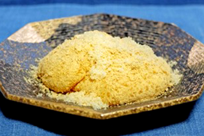 Another popular dish is Abekawa Mochi, or mochi made by pounding in kinako along with the rice, and this is another food that's now simple and standard fare for home cooks in the regions. The fresh mochi, or sometimes mochi that's been grilled and then lightly boiled, is eaten together with a mix of sugar and kinako powder. The Abekawa bridge is lined with shops offering Abekawa mochi, a hit with the tourist crowd.