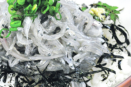 Suruga Bay, which faces the southern part of the region, is so rich in plankton that it's one of the best places in the nation for catching whitebait. The Fresh Whitebait Bowl, made with fresh raw whitebait on top of warm rice, sprinkled with scallions and seaweed, is a hit among tourists and a simple stable of home kitchens.