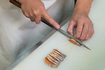 "Funazushi" is an emblematic local dish of Shiga Prefecture. It is a preserved meal, made by fermenting crucian carp caught in Lake Biwa with delicious rice harvested from the surrounding paddy fields. It is pickled in July, fermented for more than half a year, and eaten over the course of a year for New Year, Okonai-san, and the Spring Festival. Besides crucian carp, various kinds of fish such as Japanese dace, three lips, small fish such as "Honmoroko" gudgeon, and sweetfish are fermented too.