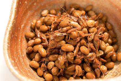 In addition to this, there are many local dishes, still popular to this day, that make full use of the bounties of Lake Biwa, such as "Ebimame" (prawn beans), which are prepared by stewing lake prawns together with soybeans, and "Yakimoroko no Dorozu," which consists of skewered Honmoroko fish, a native species of Lake Biwa, sprinkled with "Dorozu" (vinegared miso).