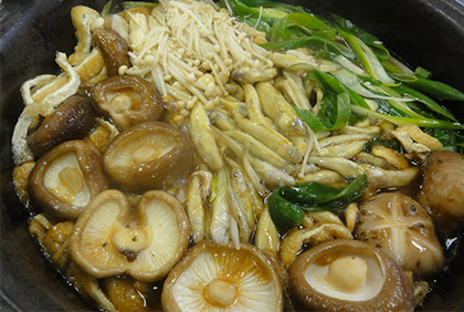 A Sukiyaki hotpot called "Junjun," which calls for Omi beef and other meat and fish as its ingredients, is frequently enjoyed throughout the prefecture; however, near the shores of Lake Biwa in the Kosei area, it is often the case that eels and "Isaza" fish that have just been caught in the lake are used as ingredients. By simmering the hotpot in a mixture of vegetables such as green onions and burdock roots with plenty of Dashi stock instead of using "Warishita" (Sukiyaki stock), the excessive amount of oil will be tamed down and a refined taste can be achieved. This dish colors the dining tables for each event such as New Year and the spring festival.