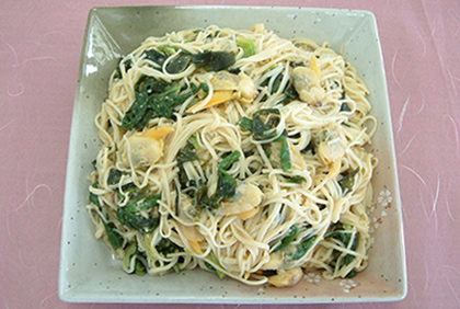 Furthermore, the low temperatures and dry weather are very conducive to making noodles, making the area well-known for thin noodles like somen and hiyamugi. In this area in particular, the ends of the somen noodles are clipped at the ends, referred to as “bachi” and “fushi,” before being boiled and then paired with other ingredients to create a local dish called “Somen-nuta.” Originally it was served during special ceremonial occasions, but nowadays it's served more casually. The dish itself resulted from a creative way to eat without wasting the parts of ingredients that typically can’t be sold.