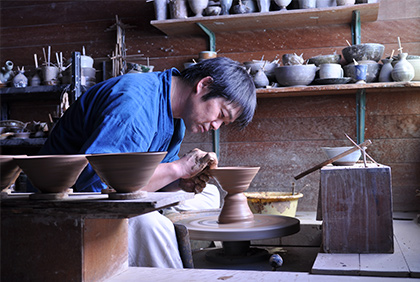 Iga nowadays is also very well-known for “Iga ware,” a style of traditional Japanese pottery. In years past it was used to craft seed pots, and when Todai-ji Temple was still in service as a manor a culture sprouted up as everyday items needed to be made, including sake containers for offerings during ceremonies. This culture grew in tandem with the rising popularity of the tea ceremony, which helped rear this traditional pottery craft. During the slower seasons and winter when farmers were inside more, “kumihimo” cord making was the side activity of choice. Originally the cord making style called “karakumi” started in the Nara period (710 to 784) for use in Buddhist and Shinto practices, and these cords also found their uses for warrior helmets and sword belts. Then in the Meiji period (1868 to 1912) when the sword ban came into place, Edo (present day Tokyo) adopted these cord making techniques, and then for Kyoto, the home of Japanese clothing culture, these cords came into use for kimono sashes, traditional Japanese haori coats, and more as the art of Iga cord making was built upon. This is yet another aspect where Kyoto’s close cultural ties to the area shine through vividly.