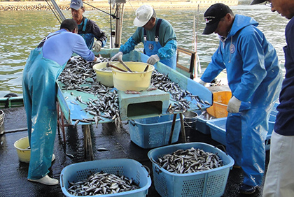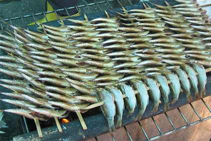 An example of this can be found in “Sakana no jifu,” a sukiyaki-style hot pot dish made with fish. Another example is the dish “Oshiki-jiru,” which is a miso soup that features an extensive use of seafood. It was originally conceived of by fishermen who brought in fish using large “oshiki” nets. “Kajika no aburi” is a dish that has gained traction as a product lately due to it being an exemplary model of how you can eat and enjoy small fish at home, even when these ingredients are typically impossible to sell on their own.