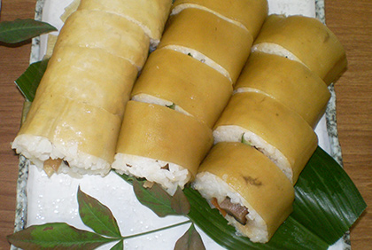 As you might expect after seeing the terraced rice fields, space for rice paddies here in this region is fairly limited. Since this makes rice all the more valuable, tea flavored rice gruel would be eaten on a daily basis, while cooked rice dishes would be saved for more special occasions. To name some examples, “Kokera-zushi” has a beautifully arranged lineup of colors featuring five rectangular ingredients, with the final product resembling “kokera” shingled roofs. Then there is “Sanma-zushi,” which is a sushi dish made using an entire Pacific saury fish. Another of these dishes is the “Kobumaki-zushi,” which takes well-cooked thin white kombu strips to wrap the same way nori seaweed is used. “Kashimae-zushi” takes the skin-side of a largehead hairtail and tops it on sushi rice to form rod-shaped sushi. Lastly there is nigiri-zushi made with watari oysters, and then nare-zushi, which is a fermented sushi that uses lactic fermentation rather than vinegar to achieve its acidic quality. With these dishes and many more you can see how the local area here puts a high level of value on rice and utilizes it for a vast succession of varied sushi dishes utilizing the local fish.