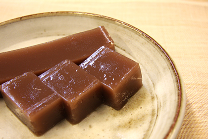 Since the late Edo period, agar has been produced in the mountain villages of the Hokusetsu region during winter, which was a leisure season for the local farmers. "Decchi Yokan" was made from this agar. Thanks to its moderate sugar content, Decchi Yokan has a rather delicate taste compared to ordinary Yokan, which requires plenty of sugar for its preparation.
