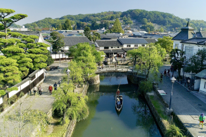 Kurashiki is a well-known town on the Seto Inland Sea side of the prefecture. During the Edo period, it was designated as tenryo, which were lands under the direct control of the shogunate, and it became the center of trade where resources would gather from all over Bitchu. With white-walled earthen warehouses, townhouses with latticed windows standing side-by-side, and rows of willows along Kurashiki River, the traditionally beauty of the town scenery is endless, and in 1979 the town was selected as an “Important Traditional Architectural Preservation Area”.