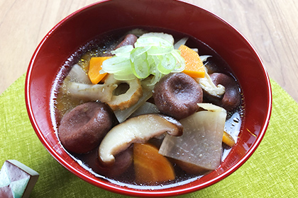 The soil in the north of Bitchu is not suitable for rice crops, and since olden times the region has thrived through the cultivation of assorted grains. Using one such grain, buckwheat, is the local dish kenchinsoba. This dish consists of kenchin soup—tofu, daikon radish, carrots, burdock, and other vegetables in a soy sauce-based chicken broth—poured over warm soba noodles. It is said that during the Edo period, in order to provide nutrition during the winter, people used kenchin soup which went well with their soba.