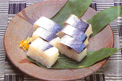 In the Mimasaka region, sabazushi is a treasured dish served at feasts during autumn festivals. It is a cylindrical sushi made with salted mackerel which was conceived of by using the salted fish brought from the San-in region. Being far from the coast, it was difficult to transport fresh fish to Mimasaka before it went bad. The dish is made in most regions during the autumn festival or at the end of the rice paddy planting season. During the autumn festival, one household would make copious amounts of sabazushi and give it out to friends and relatives or serve it to guests.
