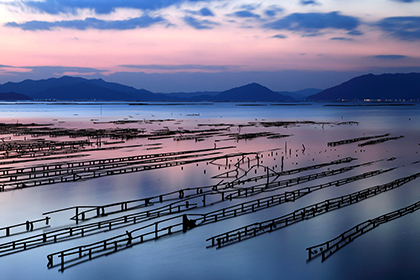 As for its food culture, Hiroshima has long had a custom of eating oysters. Shells excavated from shell heaps have revealed that people ate natural oysters during the Jomon and Yayoi periods, and it is believed that aquaculture began around the year 1500 to 1600. It currently has the highest oyster production in Japan, accounting for over half of the nation's total ("Fishery and Aquaculture Production Statistics" by the Ministry of Agriculture, Forestry and Fisheries in 2020). The bays in this area are perfect for growing oysters. The oysters produced are large and rich in flavor, making them popular throughout Japan. Locals eat these oysters in various ways, such as enjoying them fried or as kaki meshi (oyster rice), kaki no dotenabe (oyster hot pot), kaki zoni (New Year's oyster soup dish), and kaki no karayaki (baked oyster shell).