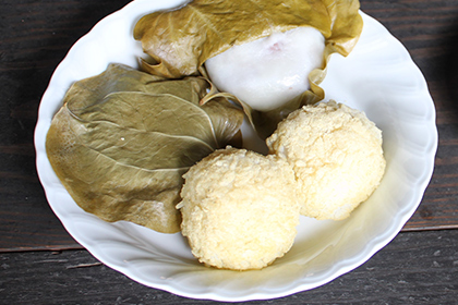 The kinako-musubi is served at the Mibu no Hana Taue. These rice balls were made in a round shape and sprinkled with soybean flour to make them easier to eat and are said to be filled with wishes for the rice's full harvest. Along with the event, the kinako-musubi continues to be passed on with great care today.