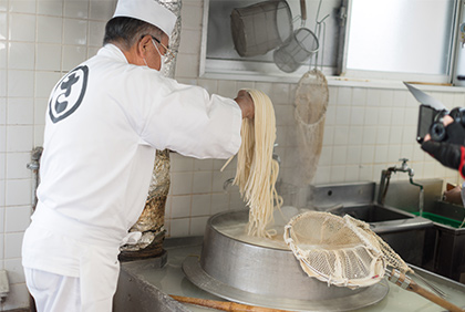 There is farming on the plain and fishing in the coastal areas. Udon makes the most of these regional resources. Winters are mild and suitable for barley cultivation, salt is produced on the shallow coasts, anchovies are caught in the Seto Inland Sea, and have been used in place of dried sardines to make Dashi, fragrant leeks are cultivated throughout the prefecture, and Shodoshima is known for its thriving soy sauce production. All the necessary ingredients for Udon can be found nearby. It is a regional food of the prefecture born from the climate and natural features of Kagawa.