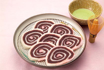 The traditional sweets known as Uzumaki Mochi, from the area of Hiketa, which is located on the border with Naruto City in the Tokushima Prefecture, have also been passed down since ancient times. This sweet is said to represent the Naruto whirlpools by wrapping soft pink rice cakes with a strained bean paste filling, expressing the feelings of the fishermen from Hiketa who lost their fishing grounds in the fight with the Naruto whirlpools during the Edo period. Currently, it is used to brighten up the celebration of the Doll's Festival.