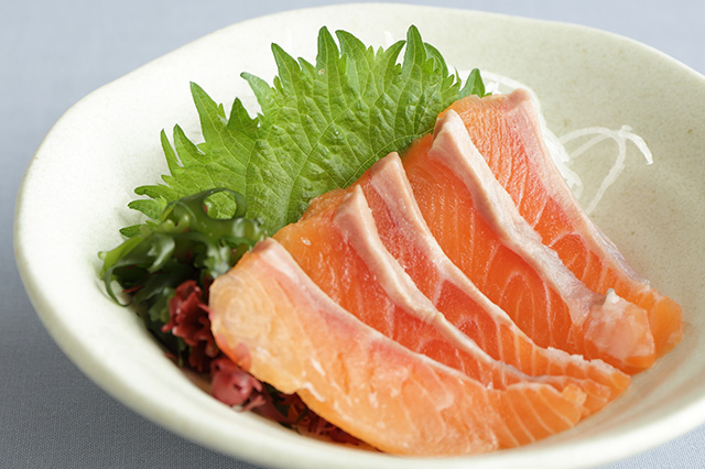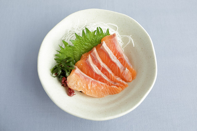 2. Peel the salmon, thinly slice it, put it into a bowl, garnish with grated wasabi, add soy sauce, and eat it as it thaws. Add lemon, grated radish, or ginger to your own preference.